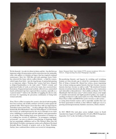 Above: Margaret Dodd, Hoon Holden (1977), ceramic sculpture, 18.5 x 42 x 18.5 cm. Image courtesy the artist. Photograph: Clay Glen.