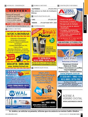 COLETA SELETIVA DE LIXO • CAEC.............................................................(71) 3293-2737 • RENOVE.................(71) 3267-0269/ 9979 - 2504 CHURRASQUEIRA BOMBAS E MOTORES