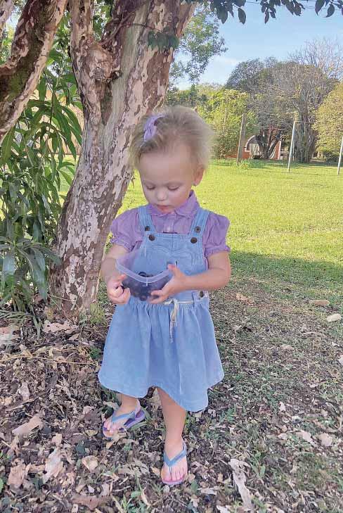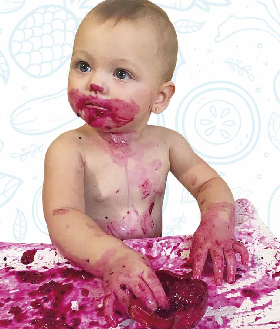 * Clara (à esquerda), toda colorida de pitaia, assim como Fred, seu irmão caçula *