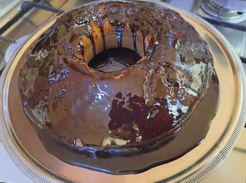 Calda: misture os ingredientes em fogo baixo e mexa até ficar uma mistura encorpada, mas não muito dura. Cubra com a calda quando o bolo ainda estiver quente.