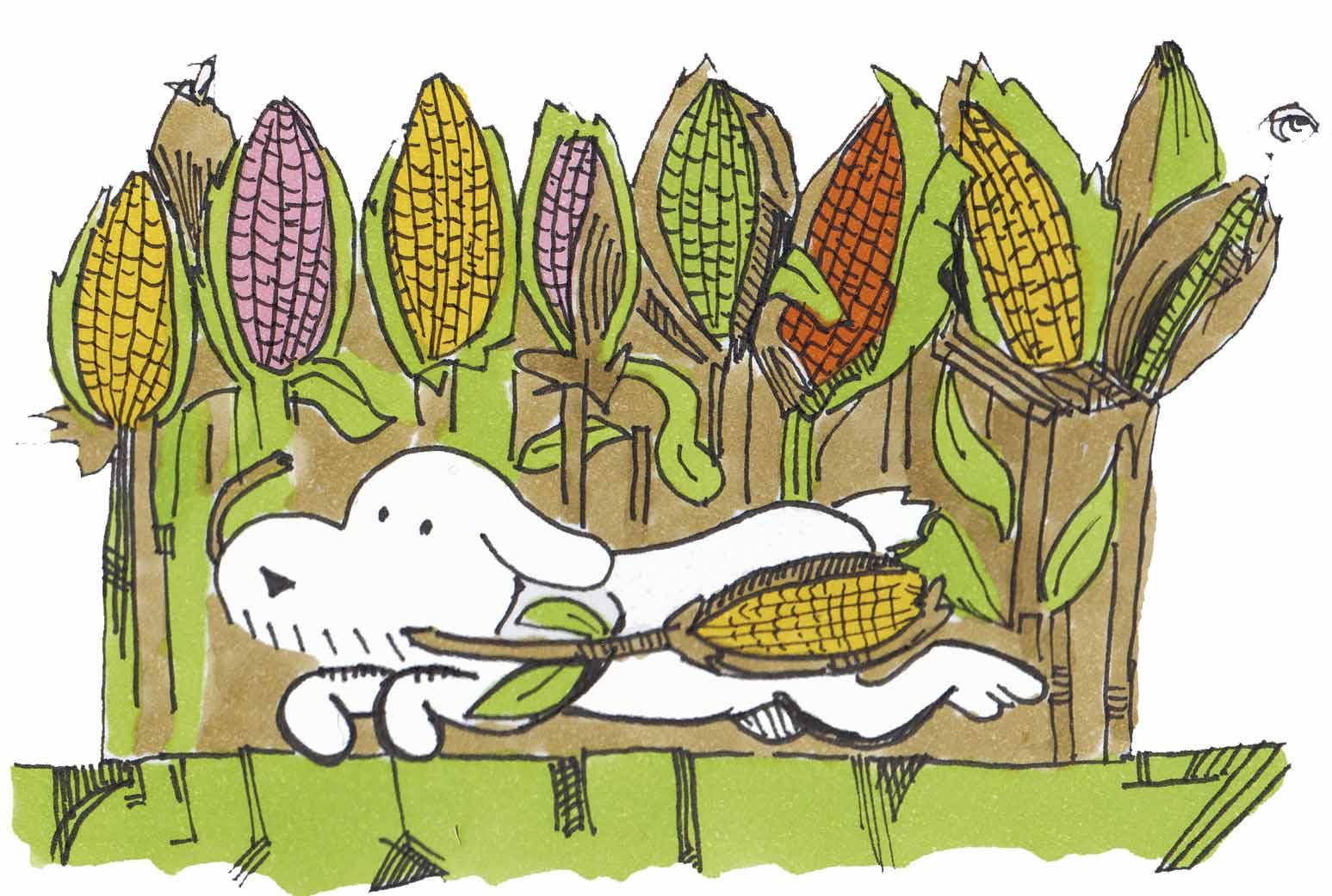 Quando o milho verde amadurece, vira milho de pipoca? Essa era a dúvida de Pingo enquanto observava as espigas que estavam sobre a mesa, na varanda do sitio da Jacutinga. Au au au?