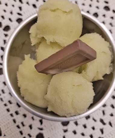 sorvete de chocolate, que só tomou forma mesmo no dia seguinte; e, finalmente, no processo do sorvete de melão. Eu achei que pode por menos água para fazer o leite com as sementes, para não ficar aguado. Eu usei um melão muito doce, o melão net. Para usar o melão comum, tipo rei, melhor incluir açúcar, para não ficar aguado. Também gostei da ideia do leite de coco para dar mais cremosidade, mas o resultado está mais para um sorbet do que para um sorvete cremoso, onde a gordura é fundamental.