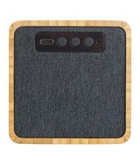 Kompakter, kabelloser 5 Watt Speaker mit natürlichem Bambusgehäuse und Ihrem individuellem vollflächigem, beleuchtetem Motiv. Mit schönem Textilbezug aus recyceltem PET auf der Vorderseite, Typ-C Schnittstelle und Freisprechfunktion.