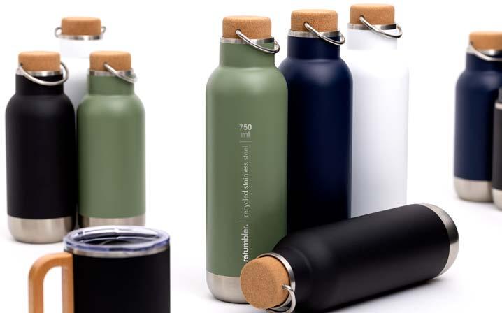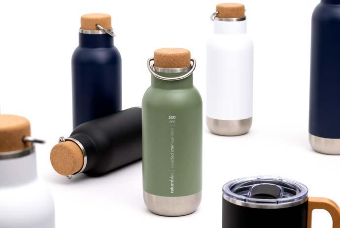 RETUMBLER-ORTADO-500 ist eine hochwertige Thermoflasche, gefertigt aus recyceltem Edelstahl und recyceltem Polypropylen-Kunststoff. Sie überzeugt durch das ästhetische Design, die angenehme Haptik sowie die herausragende Qualität. Dank der Doppelwandigkeit mit Vakuum-Isolierung hat die Trinkflasche optimale Isoliereigenschaften: Getränke darin bleiben bis zu 7 Stunden warm und bis zu 36 Stunden kalt. Die feine Pulverbeschichtung verleiht der Flasche eine äußerst angenehme Haptik. Ein Korkdeckel mit einem praktischen Henkel sorgt für einen harmonischen Look. Dank des Henkels kann die Trinkflasche bequem getragen oder an die Tasche angebracht werden – ideal für unterwegs. Durch die Silikondichtung und den Drehverschluss wird die Thermoflasche sicher verschlossen und damit auslaufgeschützt. So ist die Trinkflasche geeignet für kohlensäurehaltige Getränke. Der Artikel kann bedenkenlos in der Spülmaschine gereinigt werden. Beachten Sie: Der Korkdeckel ist nicht spülmaschinenfest!
