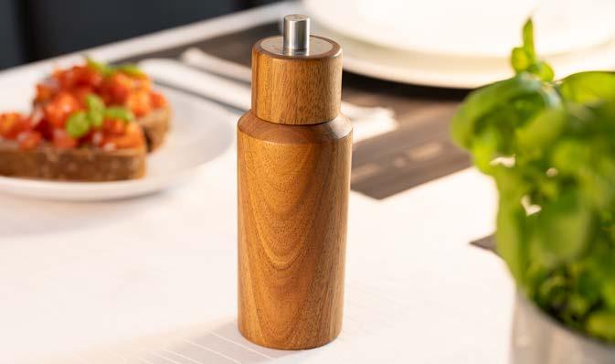 Material Holz, Silikon, recycelter Edelstahl, recyceltes Polypropylen, recycelter AS Kunststoff