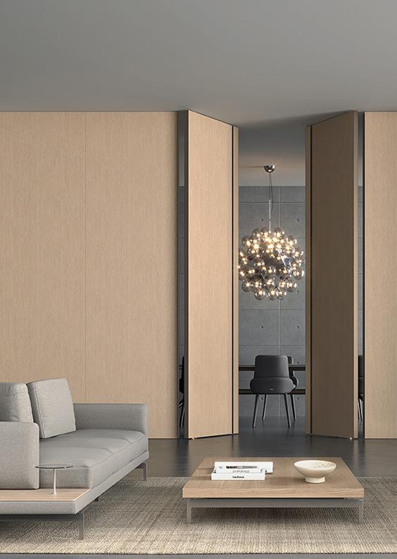 Individualität als Standard Kaum ein anderer Türenhersteller bietet eine solche Vielfalt an Oberflächen, Materialien und technischen Optionen. Pulverbeschichtetes Aluminium, edle Hölzer, Lackierungen in allen RAL-Farben, Glasfüllungen oder integrierte Akustikpaneele – Barausse ermöglicht eine durchgängig individualisierte Raumgestaltung. Dank modularem Systemaufbau lassen sich die Türen perfekt auf Innenwände, Bodenanschlüsse und Lichtkonzepte abstimmen.