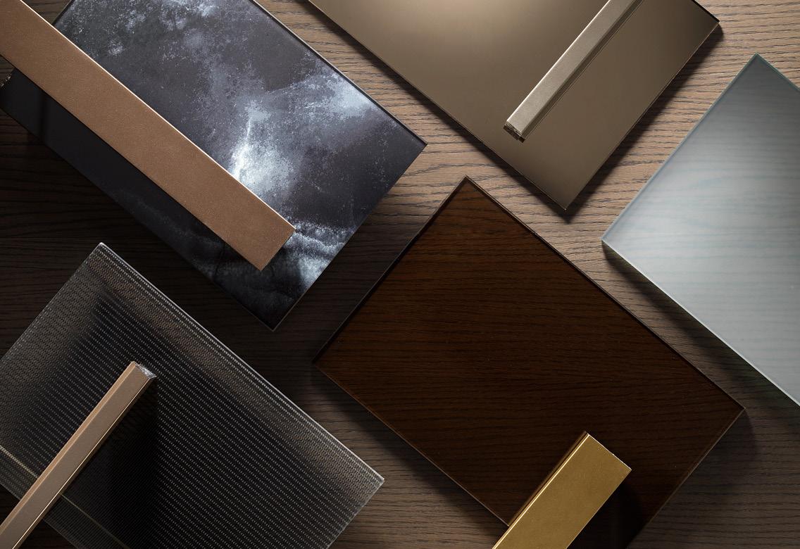 Veredelungen durch Metalleinsätze, Marmordrucke und Oberflächenveredelungen.