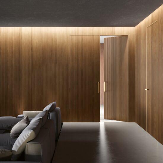 Ob wandbündig, raumhoch oder als klassische Drehtür: Barausse produziert Türen, die sich nahtlos in architektonische Konzepte einfügen – oder gezielt kontrastieren. Die Produktlinien reichen von minimalistischen Flächenbündigkeiten über luxuriöse Furnieroptiken bis hin zu maßgefertigten Sonderlösungen für Hotels, Wohnanlagen und exklusive Privathäuser.