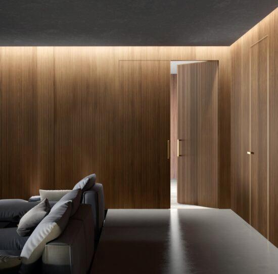 Ob wandbündig, raumhoch oder als klassische Drehtür: Barausse produziert Türen, die sich nahtlos in architektonische Konzepte einfügen – oder gezielt kontrastieren. Die Produktlinien reichen von minimalistischen Flächenbündigkeiten über luxuriöse Furnieroptiken bis hin zu massgefertigten Sonderlösungen für Hotels, Wohnanlagen und exklusive Privathäuser.