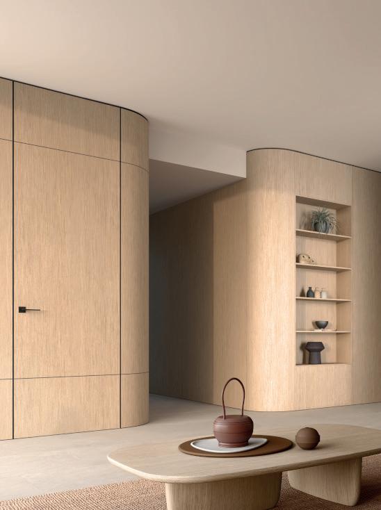 Angenehm in der Haptik, verleihen Türen und Verkleidungen den Räumen Charakter.