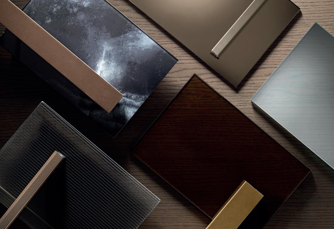 Veredelungen durch Metalleinsätze, Marmordrucke und Oberflächenveredelungen.