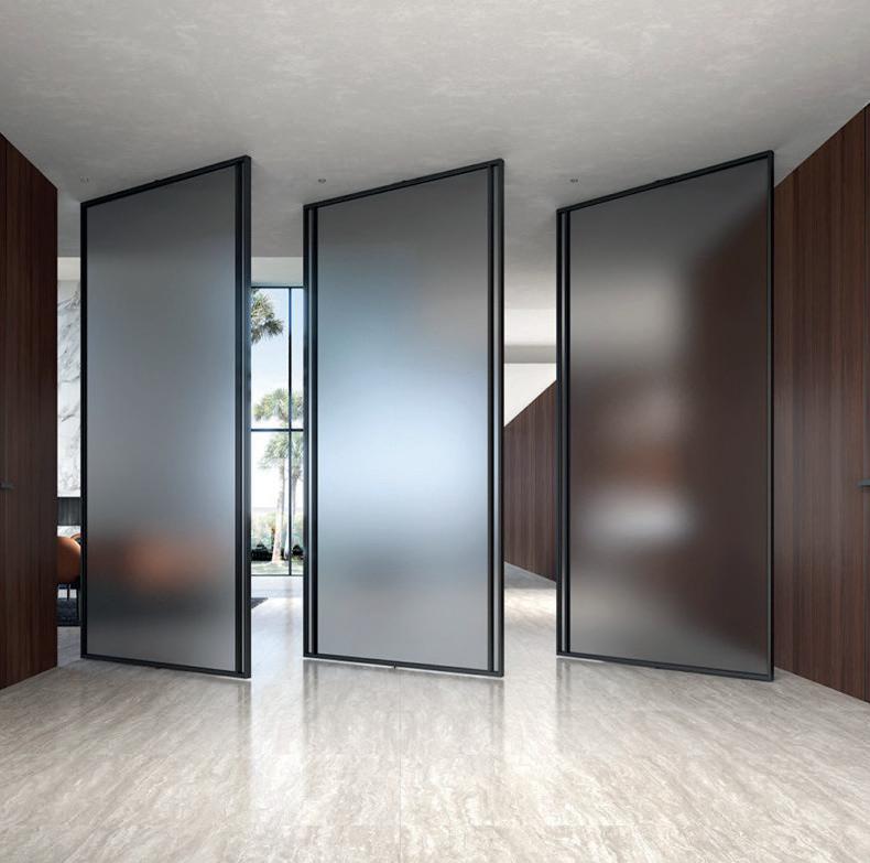 Die Produktpalette von Barausse umfasst flächenbündige Türen zum Drücken und zum Ziehen, platzsparende Lösungen wie Innenschiebetüren, Aussenschiebetüren und Falttüren, Pivottüren und Drehtüren.