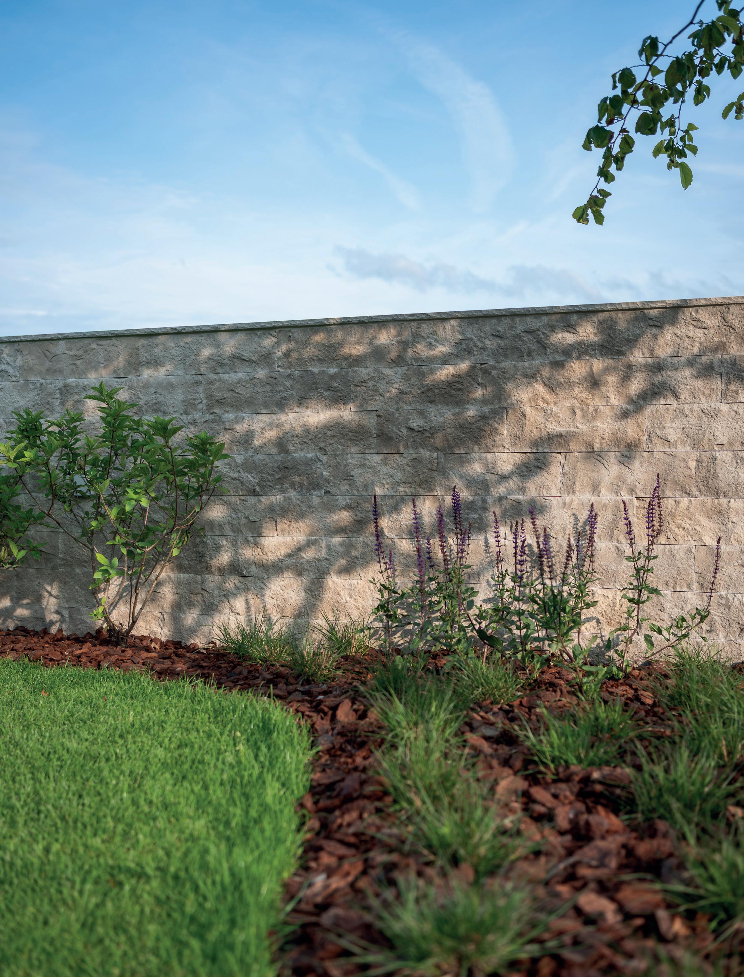 Prägend für die Atmosphäre ist die Wahl des Verkleidungsmaterials: Der Naturstein Sto Fossil Bavaria Greyblue wurde für alle Sichtflächen verwendet – von den neuen Stützmauern bis zur gesamten Garageneinfahrt. Was einst kühl und technisch wirkte, präsentiert sich nun in einer warmen, eleganten Hülle, die das Haus subtil mit dem Garten verbindet. Die feine Textur und der Farbton des Steins verleihen der Anlage ein neues, fast mediterranes Flair – urban und doch einladend, luxuriös und dennoch zurückhaltend.