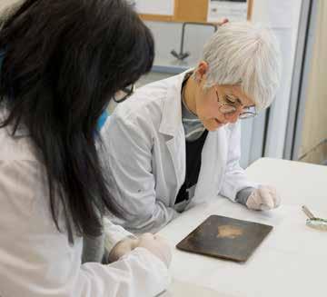 Investigadoras del CAEM realizando el examen organoléptico de la obra.
