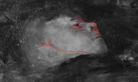 Las imágenes obtenidas mediante fotografía infrarroja en algunos casos permiten observar trazos subyacentes, que ayudan a comprender mejor el proceso creativo de la obra, ya que corresponden al dibujo realizado por el autor antes de pintar la superficie pictórica. Aunque la imagen infrarroja resultante es en escala de grises, no se trata de una fotografía en blanco y negro: los matices de gris se corresponden con las características físicas de cada material y su respuesta a las ondas infrarrojas.