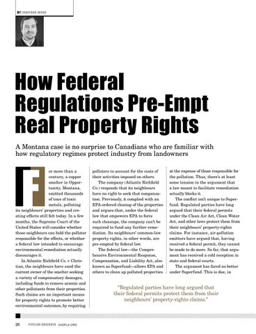 How Federal Regulations Pre-Empt Real Property Rights A Montana case is no surprise to Canadians who are familiar with how regulatory regimes protect industry from landowners