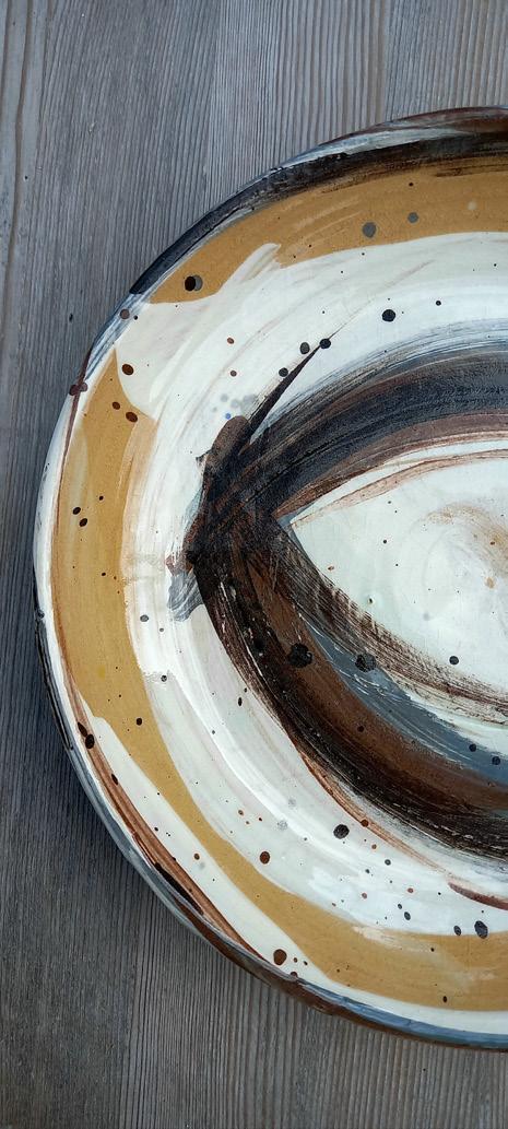 My ceramic work is traditional thrown earthenware and decorated using natural earth pigments, often incorporating clay collected from places I visit. My ceramic work and watercolours are inspired by the natural world and connection with my immediate environment.