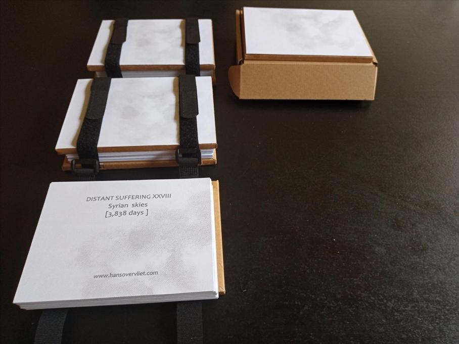 What looks like a collection of modern, enlarged versions of classic cloudscapes turns out to be an adaptation of images of explosions in Syria. Overvliet brings the printing rasters back into this age of superresolution. Where in past years he commented on the images of war in collages, he now takes a closer look at them in a style that is entirely new to me. Very impressive.