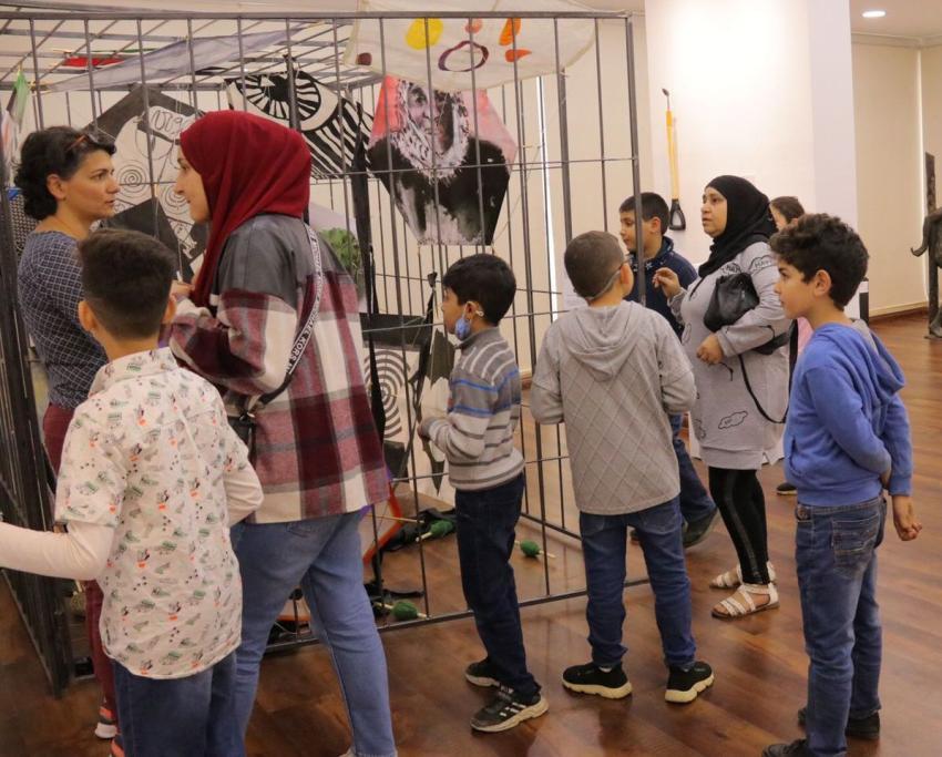 A group of twelve year old children of a primary school is visiting the complex in the context of an art education project.