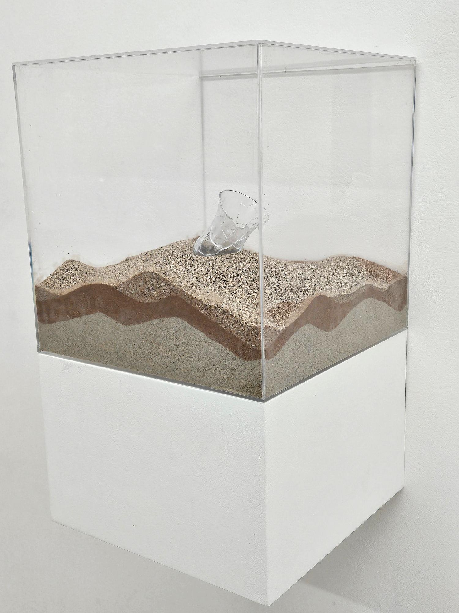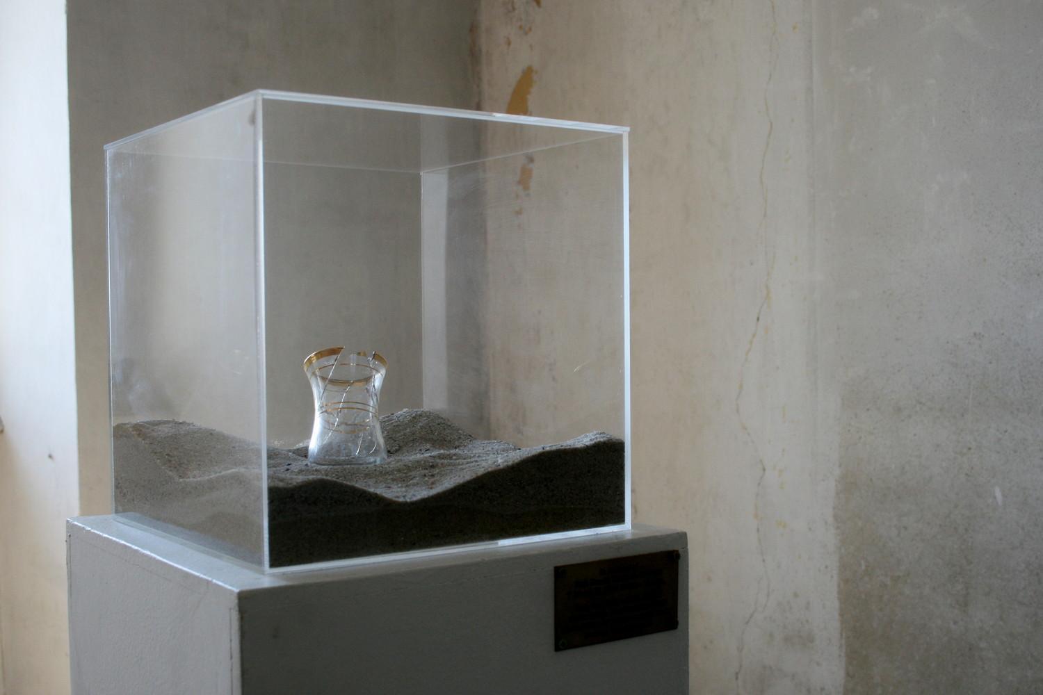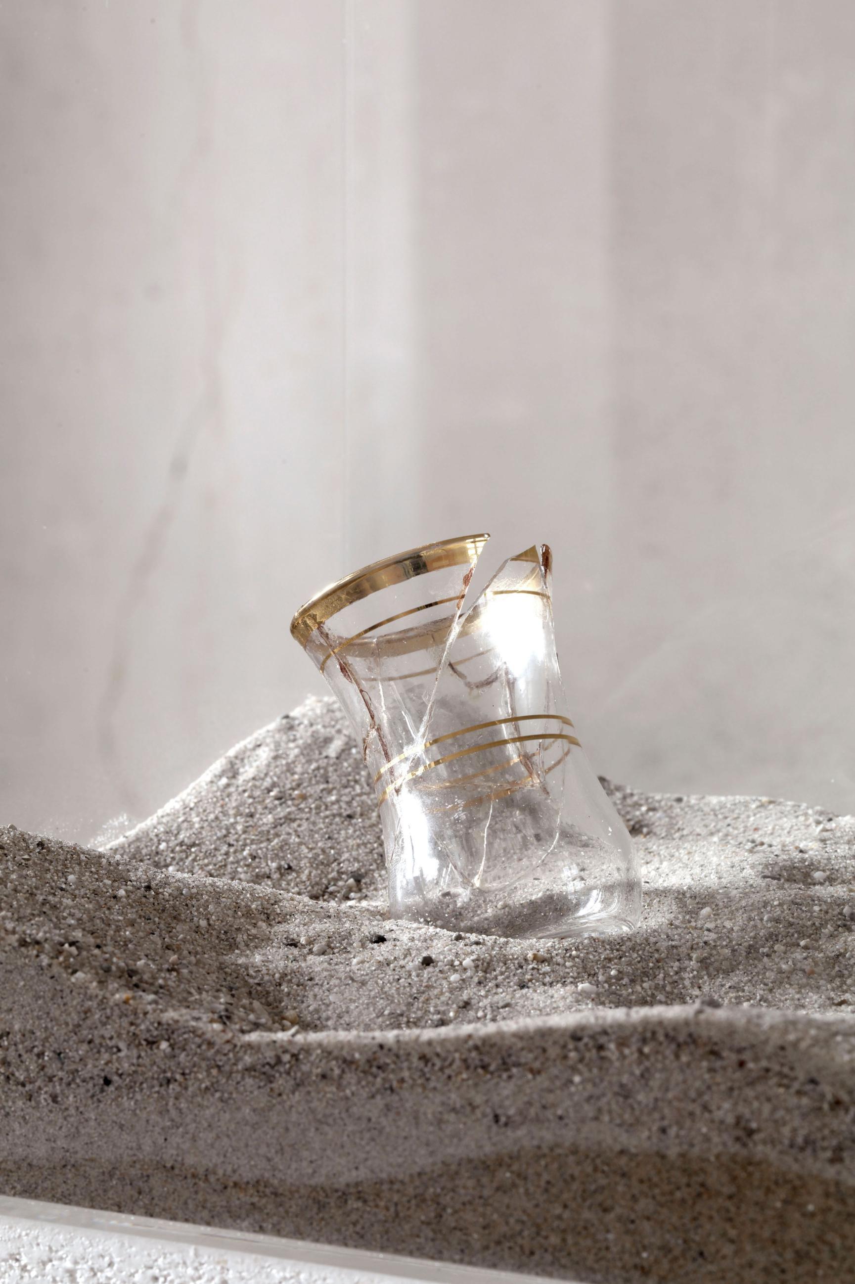 simple tea glass | Loctite Super Glue Glas sand from West Kapelle [ Zeeland ], sand from Sana’a [ Yemen ] sand from Venice Beach / Los Angeles [ U.S.A.] the sand was composed by the sculptor Ben Jackel