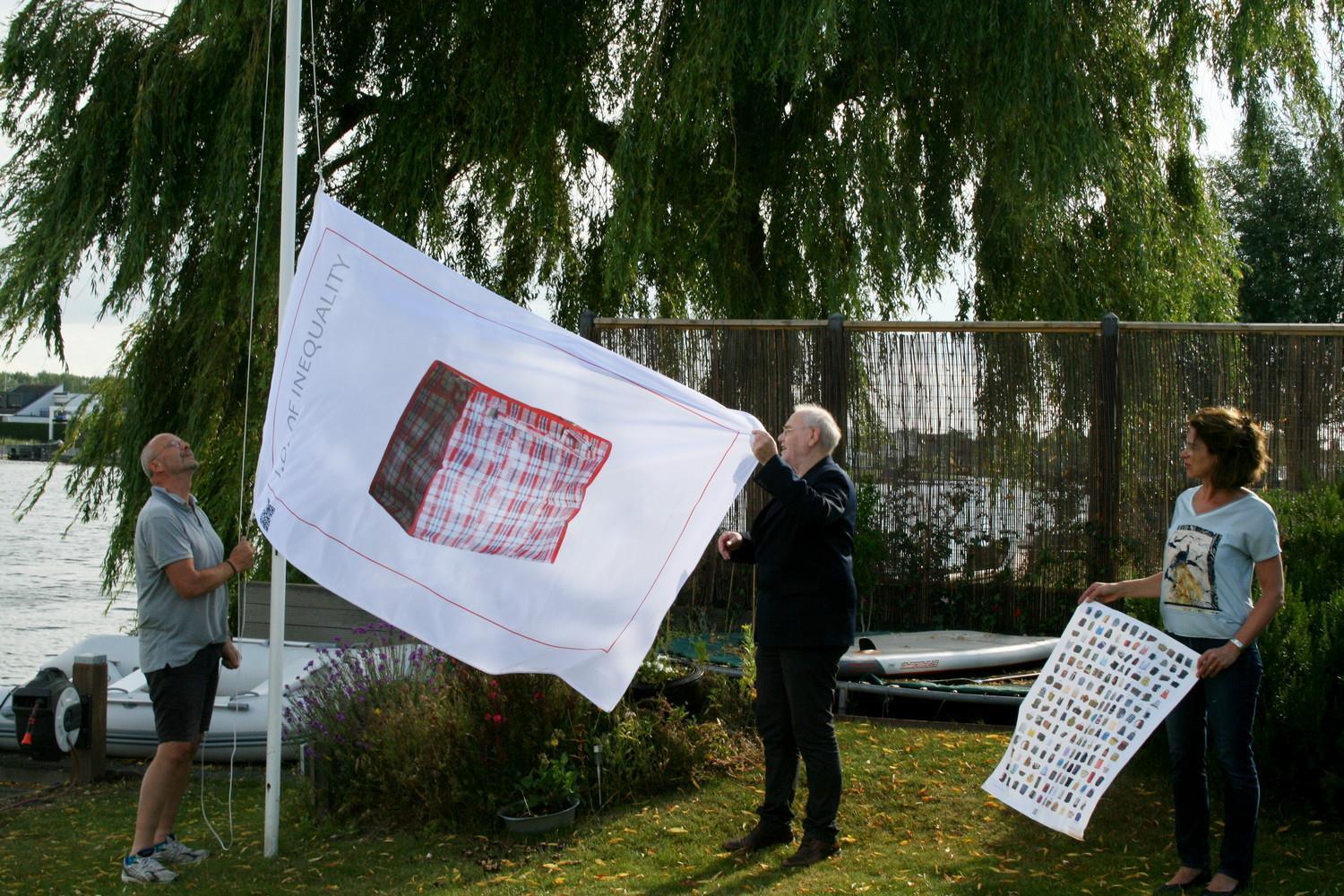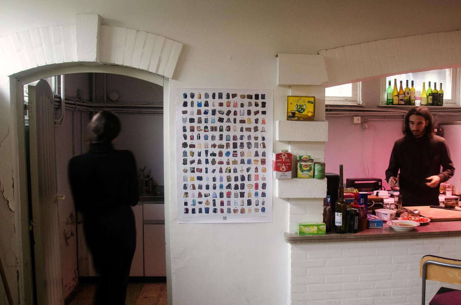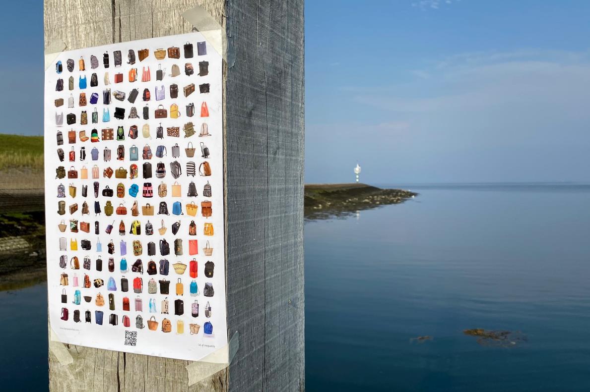 Diese Mobilität steht in starkem Kontrast zu der notwendigen Flucht vor Krieg und Armut von Migranten. Den herzlichen Empfang, den die westlichen Menschen überall erwarten können, gibt es für sie nicht. Keine Infrastruktur, in der sie sich sicher fühlen, keine Steuervorteile, sondern unzählige Gefahren, Nöte und hoffnungslose Zugangskriterien. Ihre Mobilität ist so weit wie möglich eingeschränkt und wird uns im Sinne eines „Empfangs in der Region“ verkauft. Derweil drückt sich die Realität in erniedrigenden Flüchtlingslagern aus. Kurz gesagt, Mobilität ist derzeit eines der deutlichsten Beispiele für Privilegien. Das Poster zeigt jedoch eine der wenigen Ähnlichkeiten zwischen diesen verschiedenen Reisenden, nämlich ihr Gepäck. Der entscheiden-de Unterschied besteht im Inhalt dieser Koffer, Taschen und Ruck-säcke.