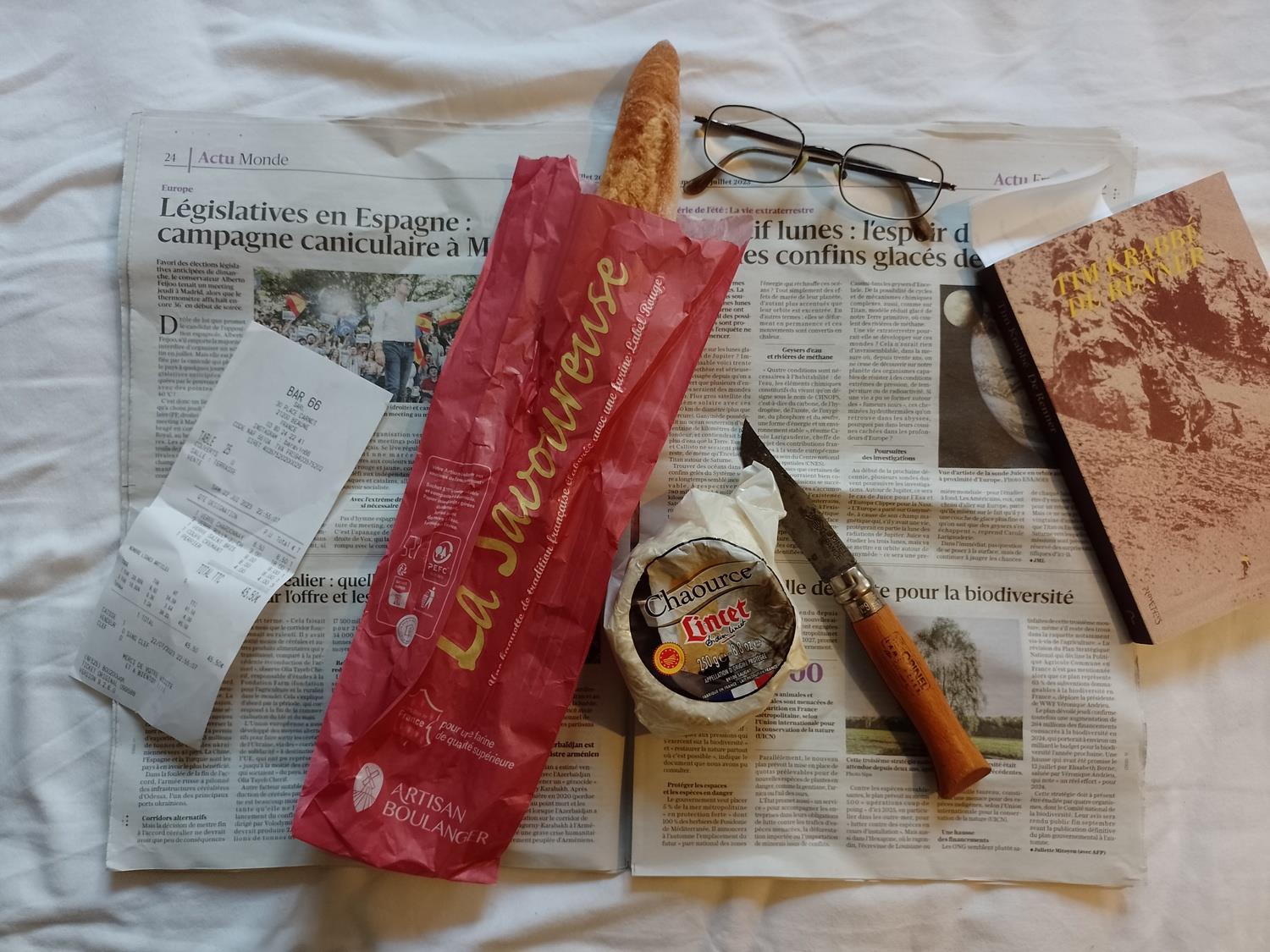 Paper Le Bien Public | book The Cyclist | food parafernalia