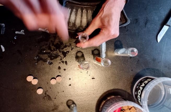 Small bottles from Etsy, Hong Kong; High borosilicate glass and corks, volume: 85 oz (25ml), 90 mm x 20 mm; opening: about 13 mm.