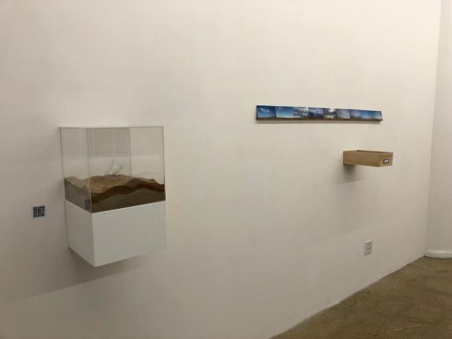 The images that cannot be shown remain in the wooden shoe box that is visible integrated into the work.