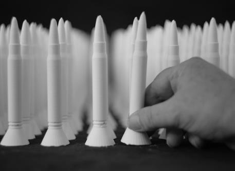 dark gray 14,5 x 33,5 x 25,5 centimeter, tagged with Qr code as link to digital catalog. The names and dates of the deceased journalists were taken from the website of the Committee of Protecting Journalists - CPJ.