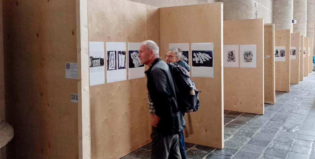 Het is voor iedereen evident dat we gezien de omstandigheden in Gaza op geen enkele wijze het originele werk hier kunnen krijgen. Dus ziet u kopieën. Door elk werk op ware grootte te plaatsen op een blad met het formaat A2, krijgt men eerlijk en transparant zicht op het werk. Daarmee creëren we tevens een rustig en evenwichtig tentoonstellingsbeeld waarin het werk centraal staat. Ik hecht er aan te melden dat de Gazaanse kunstenaars mij blind vertrouwden in mijn selectie. Eén van de reden is dat men wist dat ik nooit een tentoonstelling zou maken van louter illustraties bij een genocide, maar het kunstenaarschap zelf van deze kunstenaars mede centraal zou zetten. Uiteraard is het thema van hun werk ‘Gaza’, maar de omzetting naar beeldende kunst is en blijft hun autonome activiteit, in hun eigen, unieke en herkenbare handschrift. Vanuit dat amalgaam van overwegingen heb ik dus de selectie gemaakt. Inclusief het intrinsieke bestaansrecht van het werk; soms in de vorm van een schets of de uitwerking. Door de fysieke aanwezigheid van de werken van deze kunstenaars, bevestigen we tegelijkertijd dat ook zij bestaansrecht hebben. En dat hun stem, hun schreeuw soms, er toe doet. Er zeer toe doet . . .