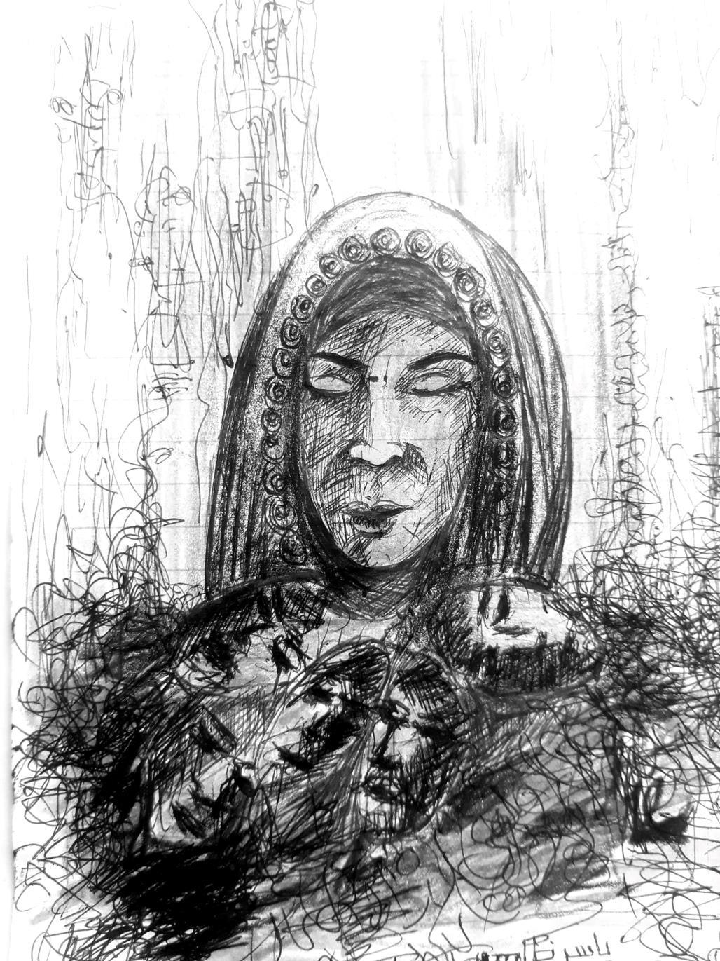 Het wordt een zoektocht .Ze kan niet meer vrolijk met inkt en penseel snelle tekeningen maken.