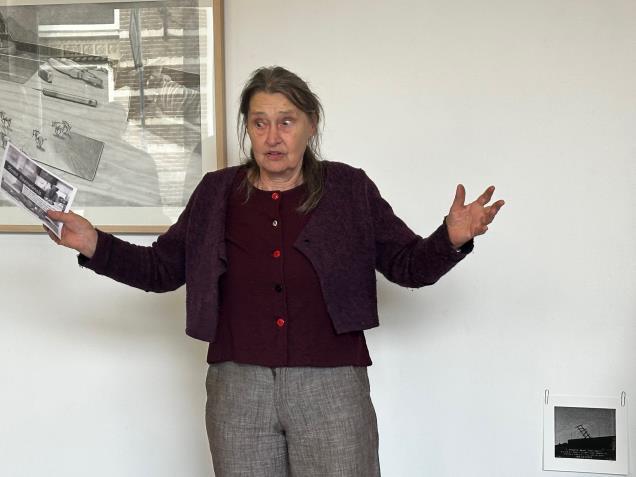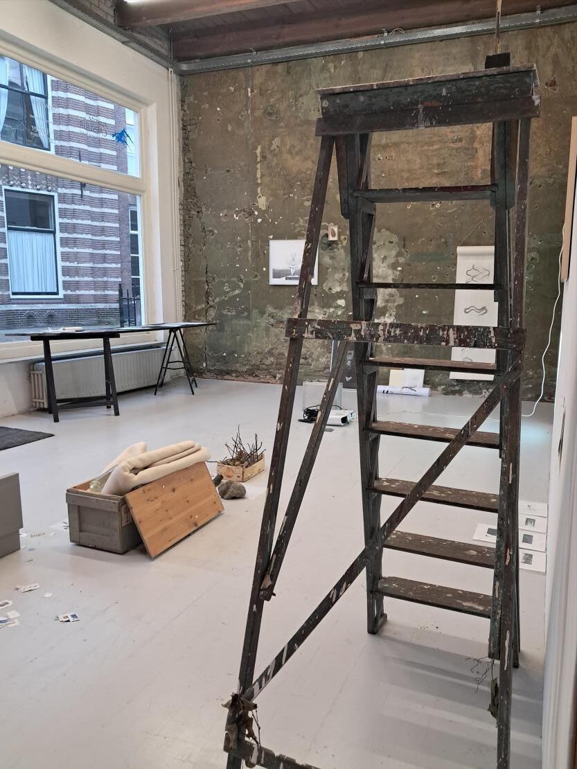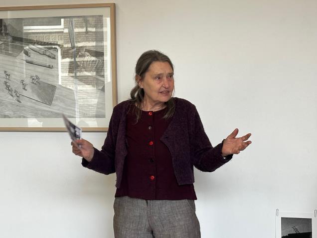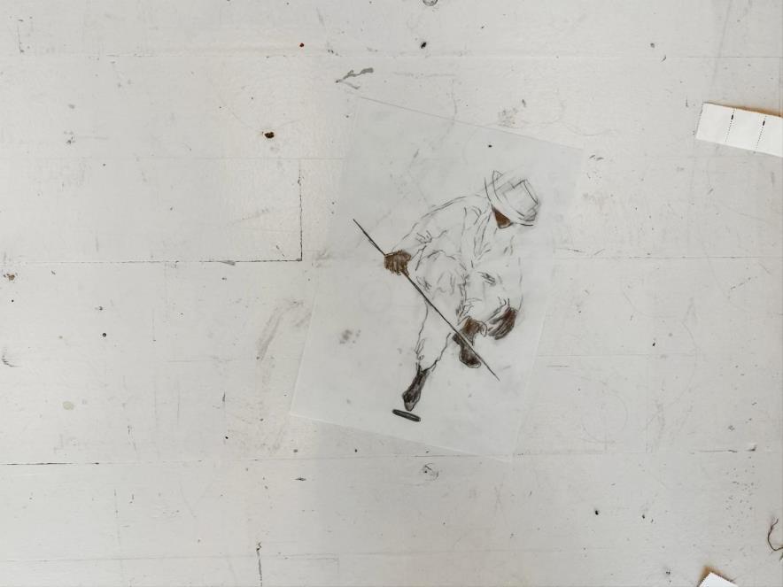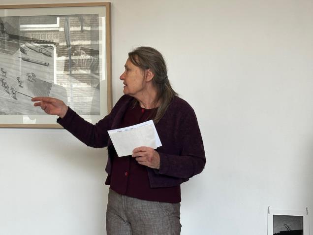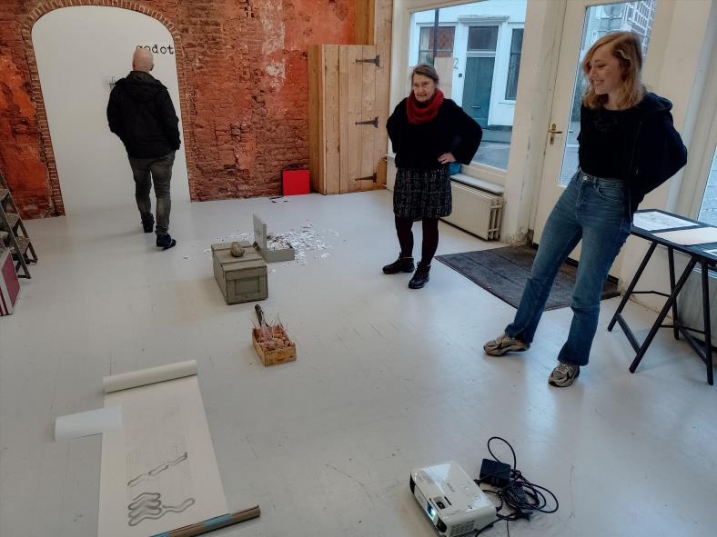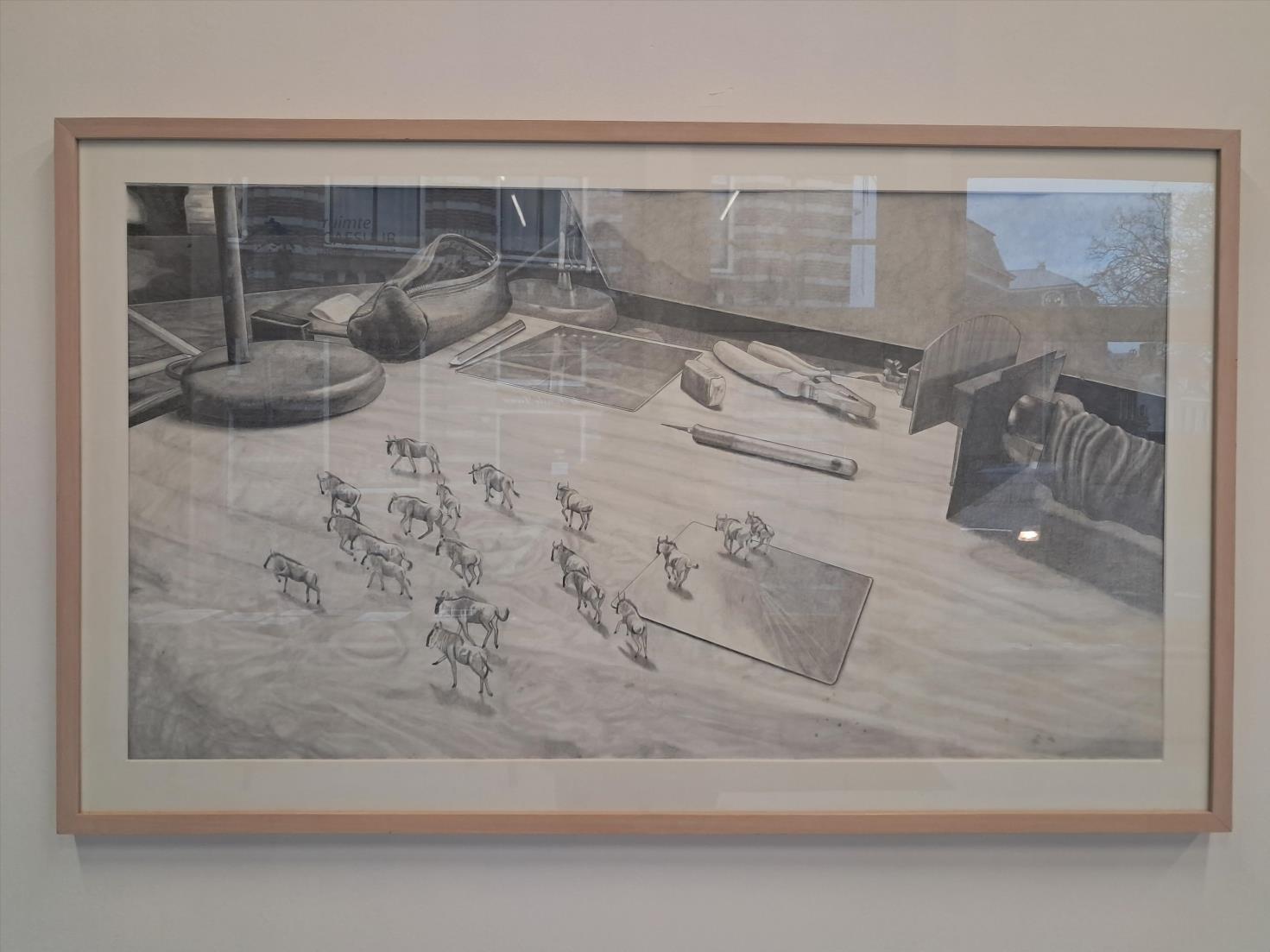Harriet: Sjoerd, het is alsof je tekening met trekkende elanden (?) op je werktafel zelf weet waar die naar toe wil. Ineens een scherper perspectief op dat wat in wording is in de ruimte.