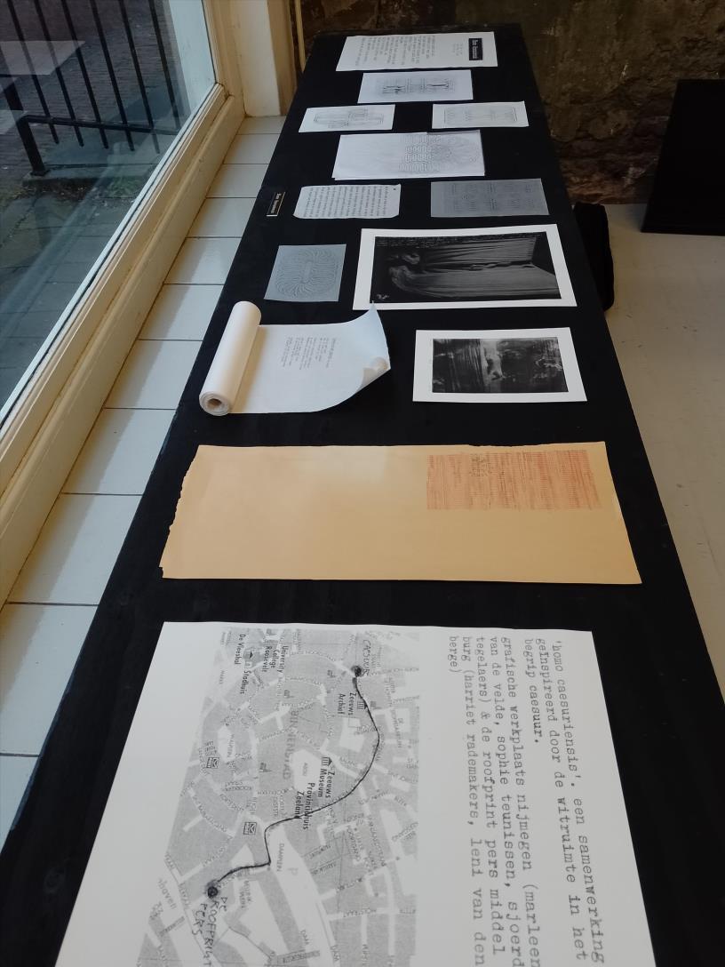 HOMO CAESURIENSIS (the caesurian human) is a collaborative project of the graphic workplace nijmegen and the robbery press in middelburg. venue: the space of CAESUUR, lange noordstraat, middelburg. the players: Sophie Teunissen, Sjoerd Tegelaers, Marleen van de Velde, (graphic workshop nijmegen) with harriët rademakers & leni van den berge (the roofprint press).