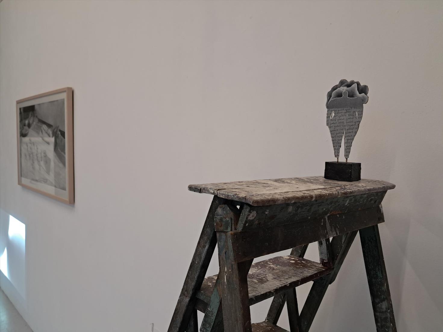 In het beeld zie je ook de gereedschappen waarmee ik werk klaarliggen. Het werk is vorig jaar gemaakt, lang voordat we deze samenwerking zijn aangegaan. Toch vind ik het beeld passen in ons concept. Zie het als een open interpretatie van de betekenis van het woord caesuur.