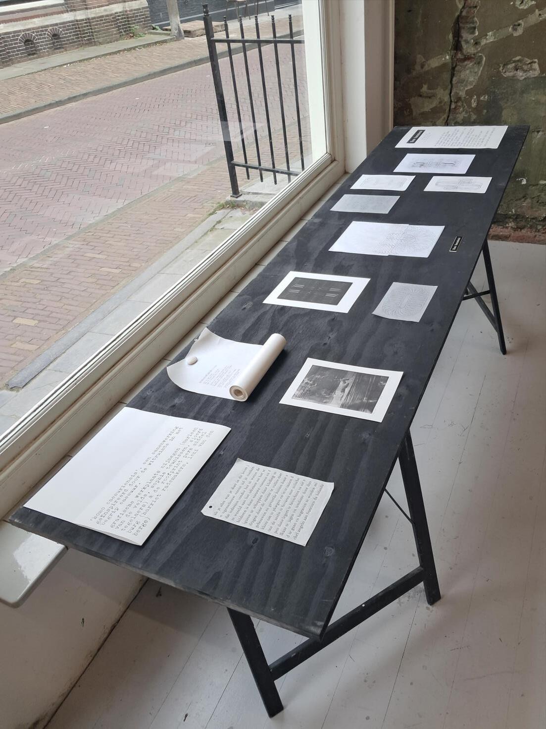(…) mijn werktafel, waar ik het grootste deel van mijn werkproces uitvoer. (Zowel het voorbereiden van de koperplaten als het polijsten van de afbeelding in de plaat.)