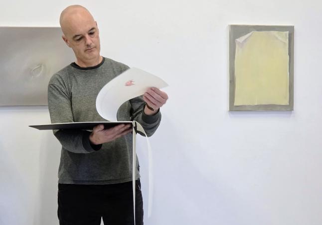 In deze tentoonstelling onderzoekt Micha Patiniott de mogelijkheid van direct contact met zelf en stem. Via schilderijen en een video volgt hij het moment waarop expressie zich naar binnen keert. Figuratie verschijnt als intimiteit: een hand, een figuur van achteren gezien. De beelden cirkelen rond een holte. In de video zingt