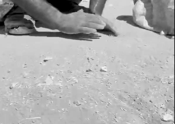 Until 26 July. A reel of just under seven seconds. I see a bearded man crouching down, scraping something out of the sand and putting that something in a brown paper bag.
