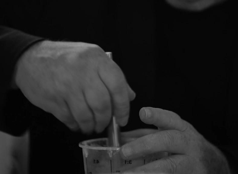 When I take a seat in Hans Overvliet's studio, I receive the multiple I.D of a shared bullet. This bullet formed of ice, trapped in a small glass container, is the first exchange between me and Hans and emphasizes the active relationship between maker and receiver that is central to his practice.