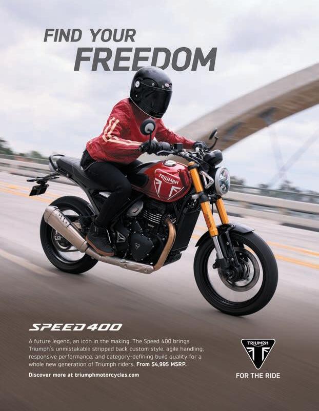 On The Cover: We had our socks (and boots) knocked off by a spin aboard MV Agusta’s sexy, scintillating Dragster America RR. A full test ride of this 160 MPH scorcher is on page 18. It’s all part of a special issue dedicated to Serious Speed and the people who seek it. We also introduce a new columnist, Anthony Conroy. Connie, as he’s known to his friends, is an experienced test rider and long-time fast bike enthusiast with some brilliant insights into the motorbike scene.