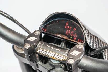 shocks were replaced by Emgo dampers made for a stock Bonneville. Kyle says the Trident can run on the less-stout shocks due to its light weight; the frame weighs 14 pounds less than the Rob North version and a good 12 pounds less than a stock Triumph chassis. Front suspension runs special triple clamps and with the internals rebuilt and the fork tubes powder coated, the handling should prove race-ready when it hits the track.
