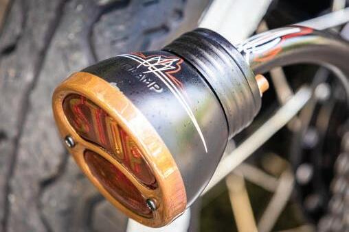 New side-mount LED taillight secures to the original exhaust hanger and looks righteous.