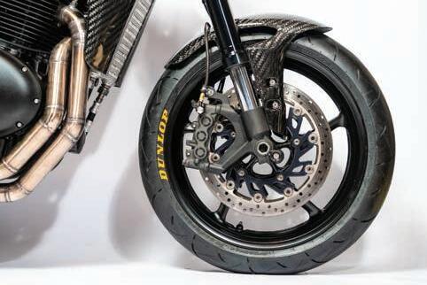 A single Brembo radial front caliper is all that’s needed for sure stopping power.