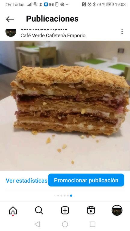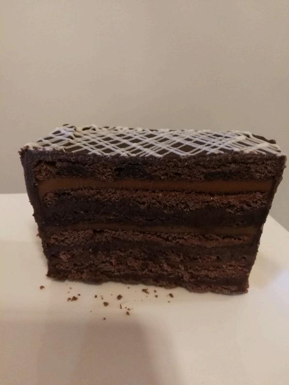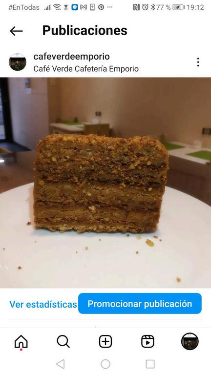 bizcocho, crema de vainilla, manjar y almendras tostadas.