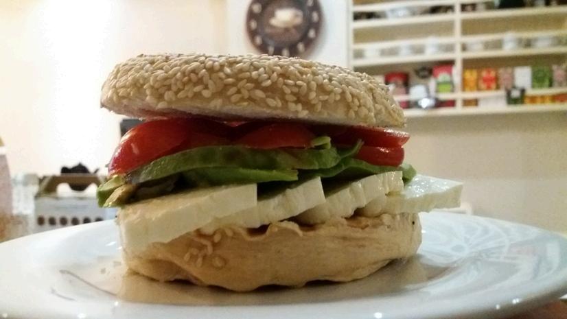 Sándwich vegetariano; lechuga, quesillo, tomate y palta.