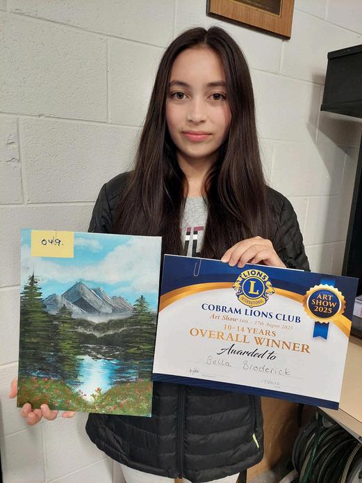 Bella Broderick’s work was selected for the overall prize in the 10–14 years category, winning the major award of $250 with her impressive artwork. Her piece was chosen as the best from all entries across the three sections for this age group!