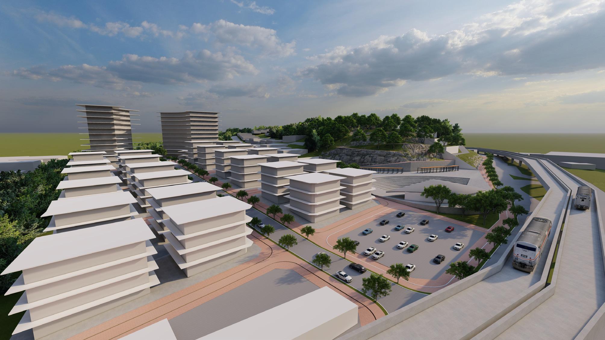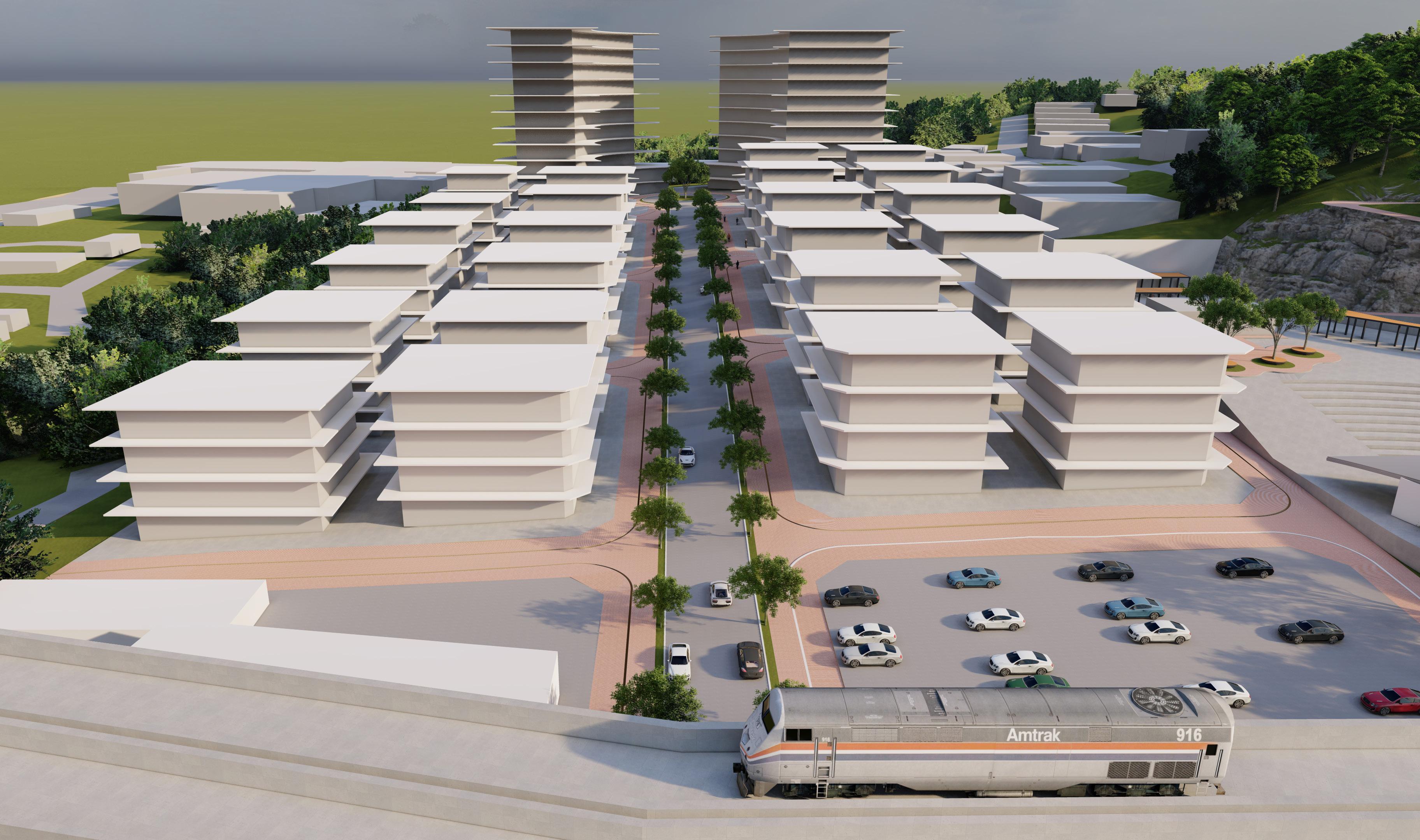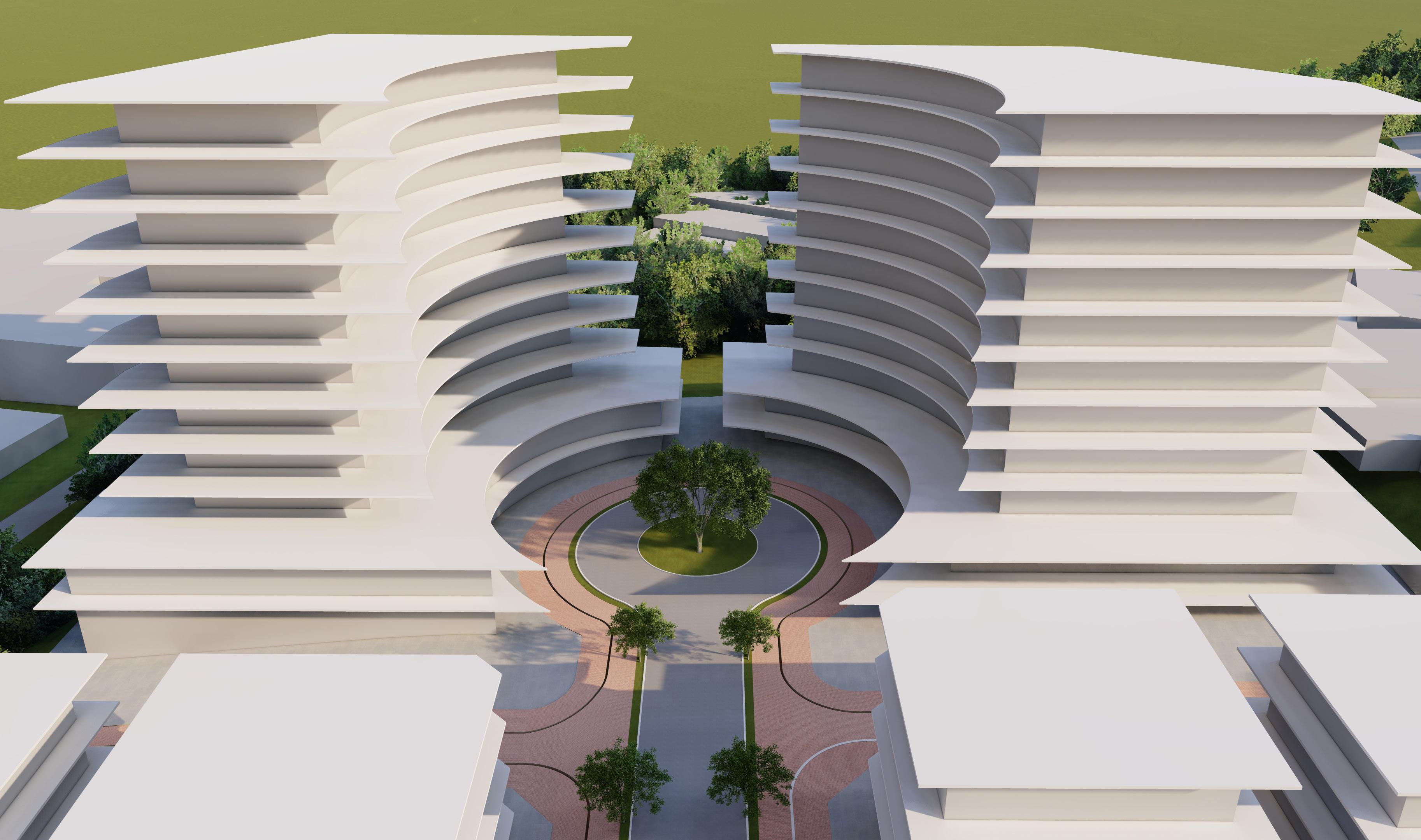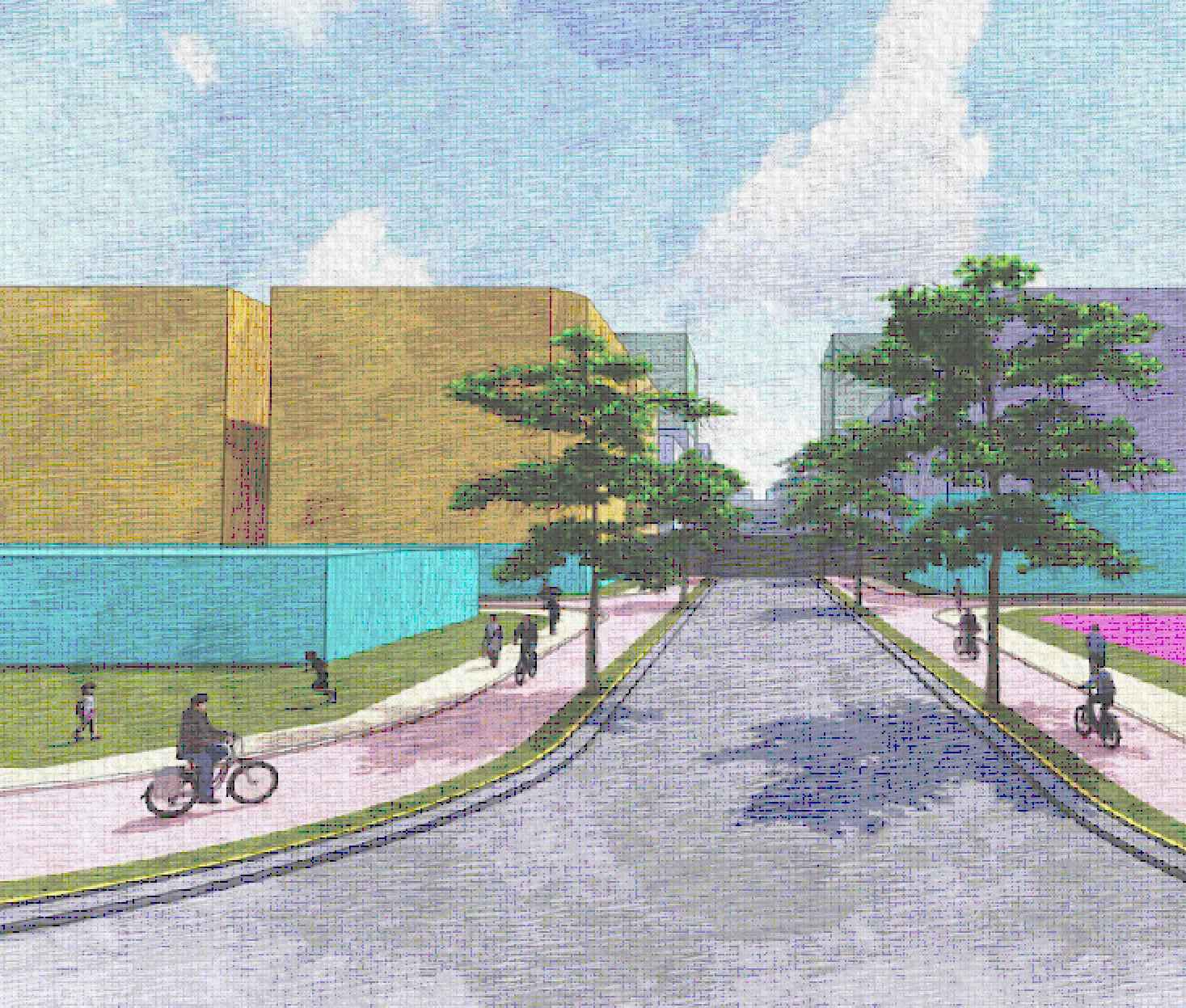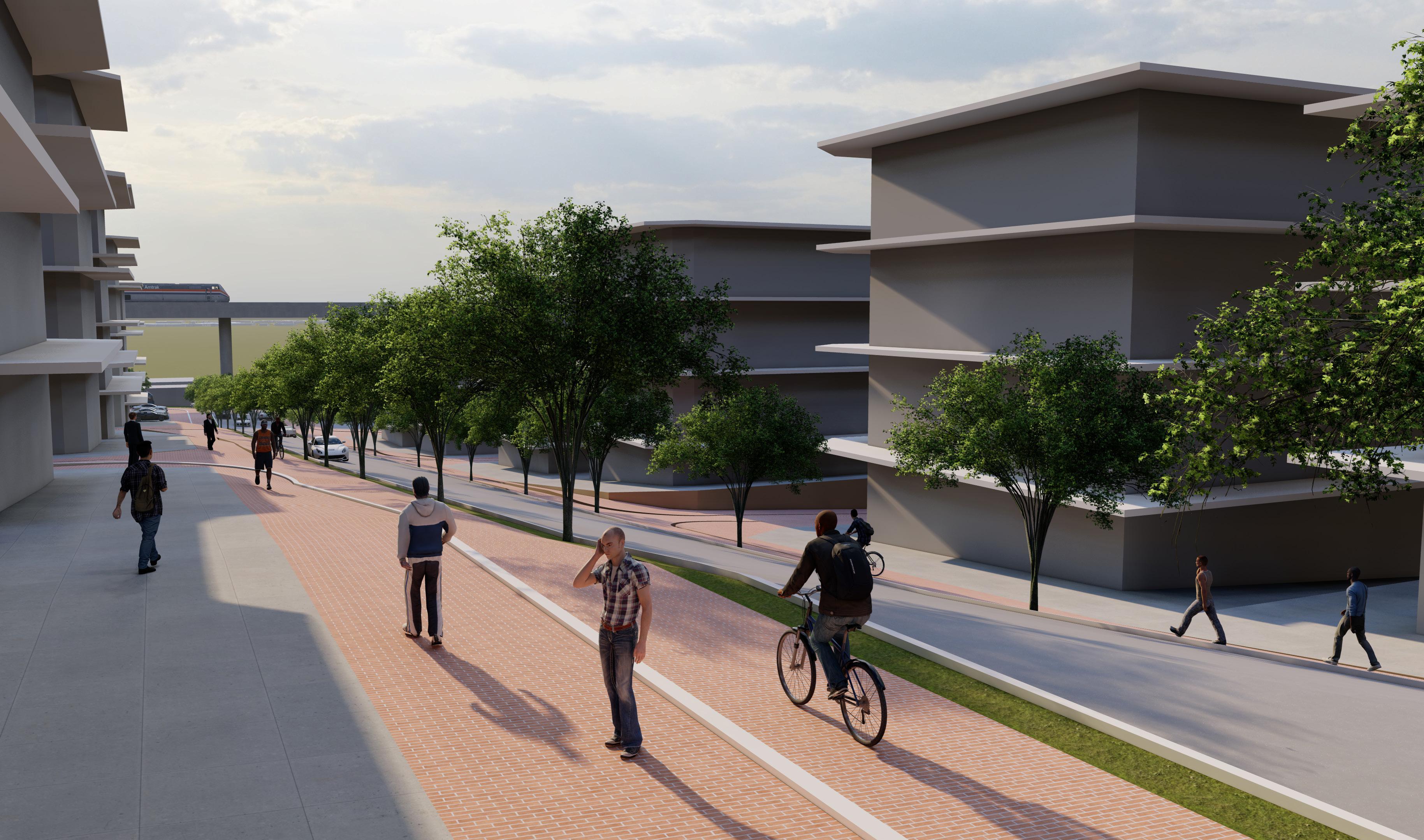 Primera intersección: creación de un conjunto de edificios de mediana y alta densidad, tomando en cuenta vías internas y ciclovías. Buscamos fomentar una urbanización más ordenada ya que habitualmente existe una gran desconexión y desorden urbano en este distrito.