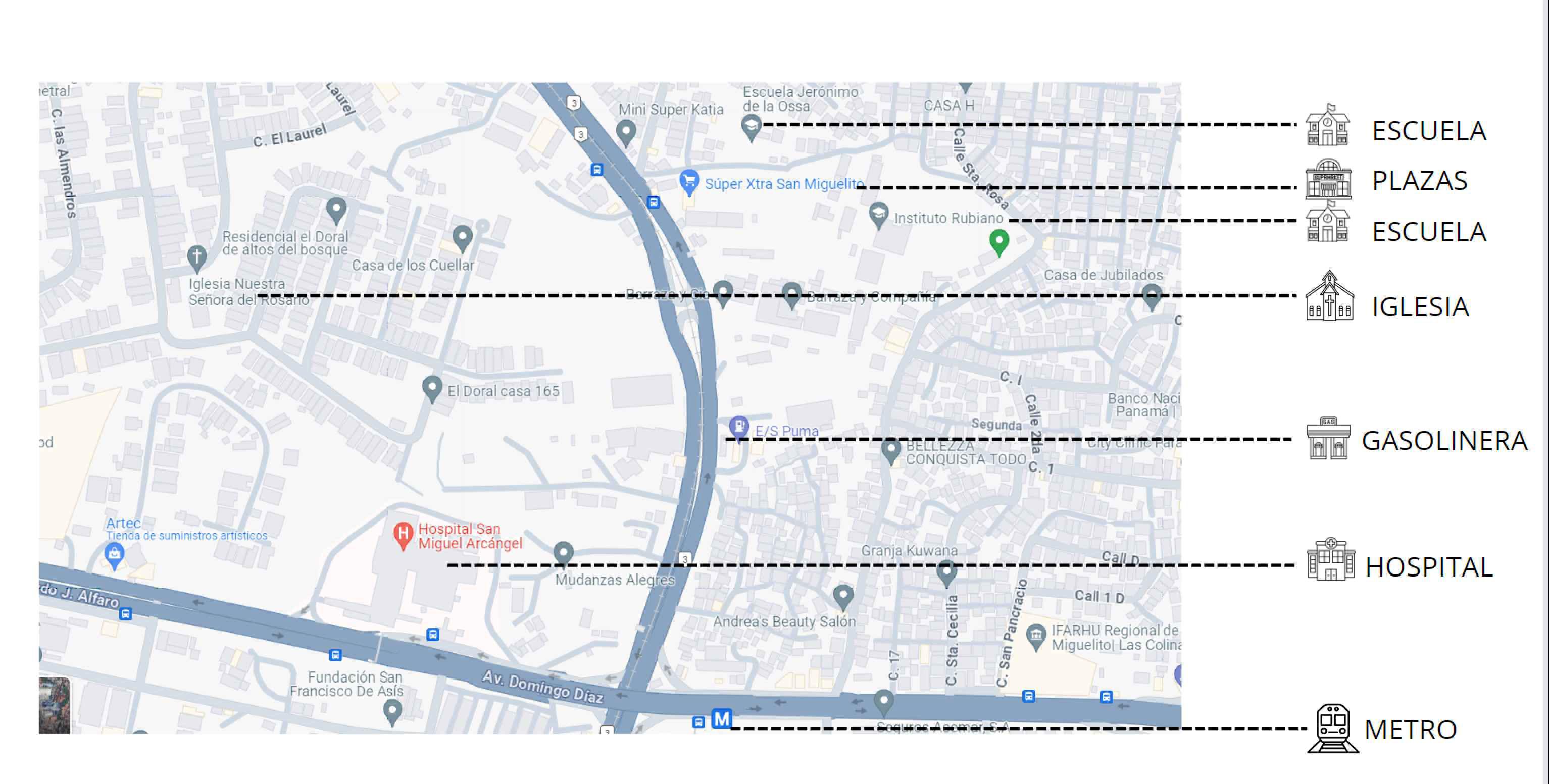 MIGUELITO ES UNO DE LOS DISTRITOS MÁS POBLADOS DE LA CIUDAD DE PANAMÁ, CONOCIDO POR SU DIVERSIDAD CULTURAL Y DENSIDAD POBLACIONAL. LAS ZONAS ALEDAÑAS AL ÁREA DE ESTUDIO SON PREDOMINANTES LAS ÁREAS RESIDENCIALES, CON ZONAS COMERCIALES A LO LARGO DE LAS PRINCIPALES VÍAS. NO EXISTEN ESPACIOS VERDES Y ÁREAS DE RECREACIÓN, SUFICIENTES PARA LA POBLACIÓN.