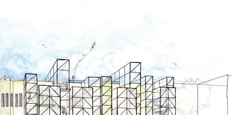 The design concept for playgrounds I am proposing is a series of modular scaffolding units that could be replicated on each of the six schools and used to pull them into an interconnected play system to be used by students and other members of the community.
