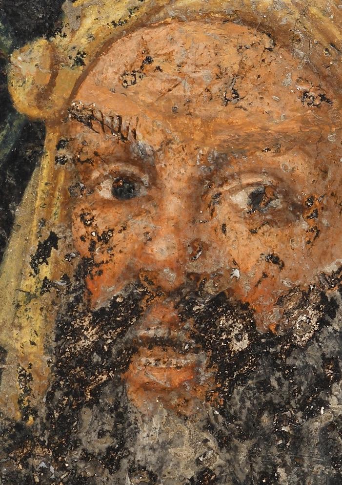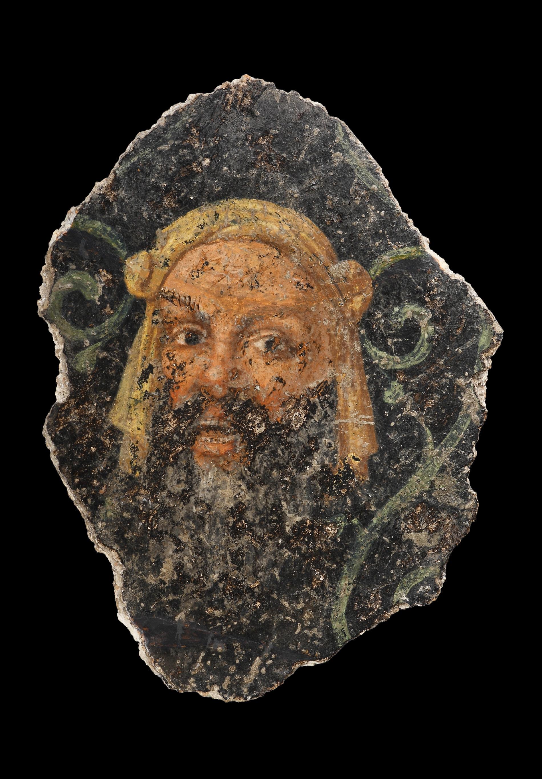 with historical restoration. Part of the right ear lost. Brows slightly worn.