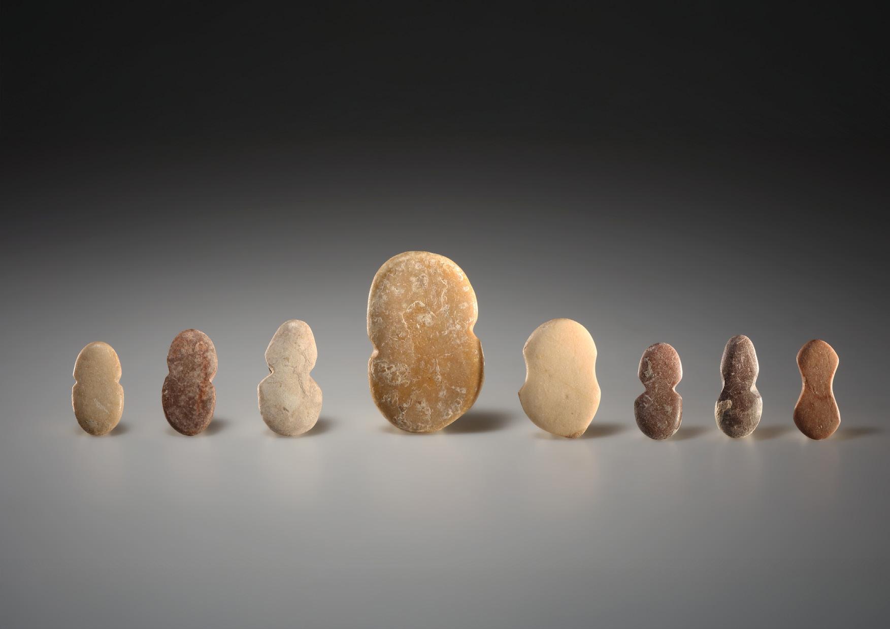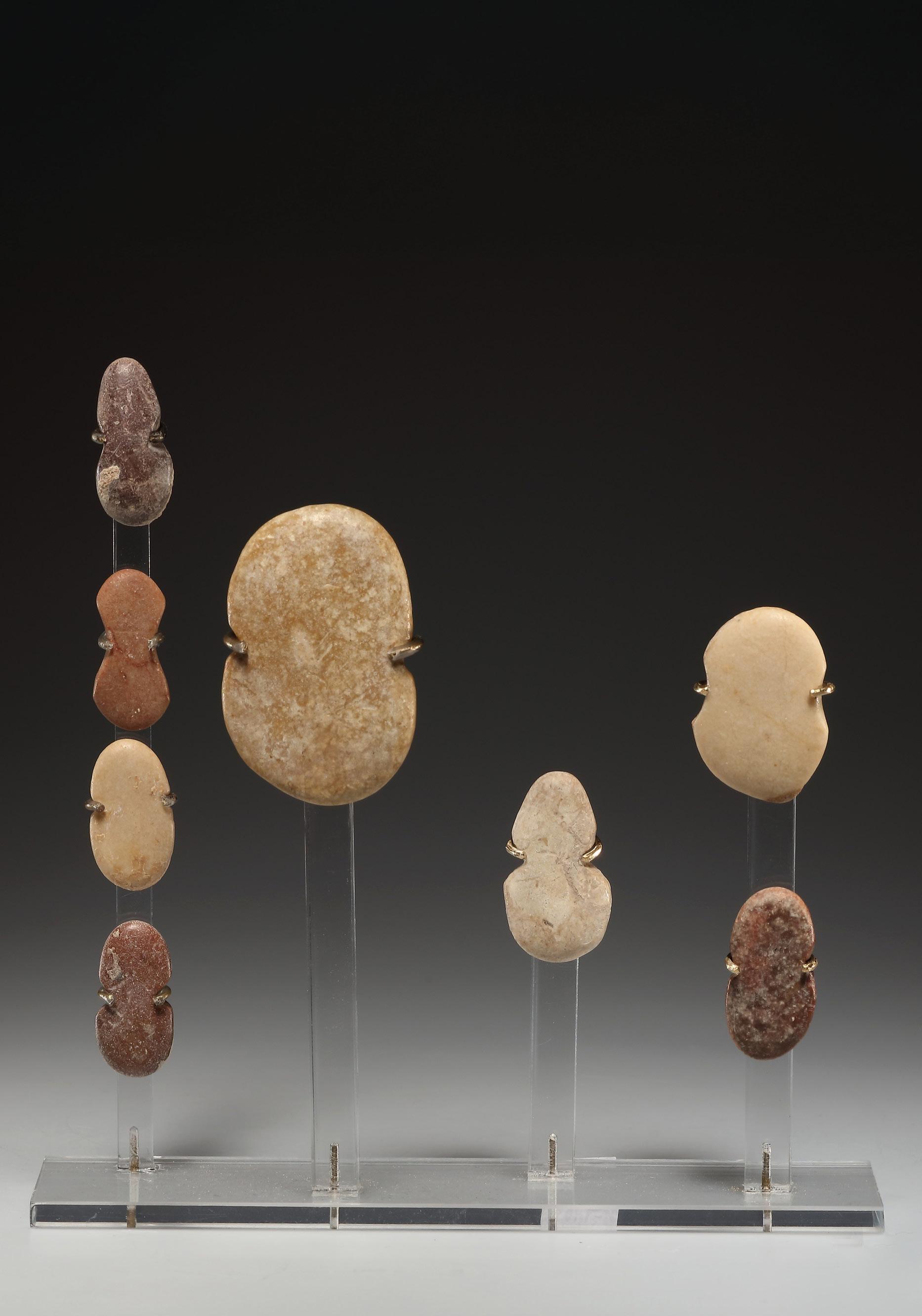 ca. 3200 - 2300 B.C. | Western Asia, Early Bronze Age H. 2,8 - 5,2 cm | W. 1,4 - 3,4 cm | D. 0,5 - 0,7 cm | Diff. types of stone